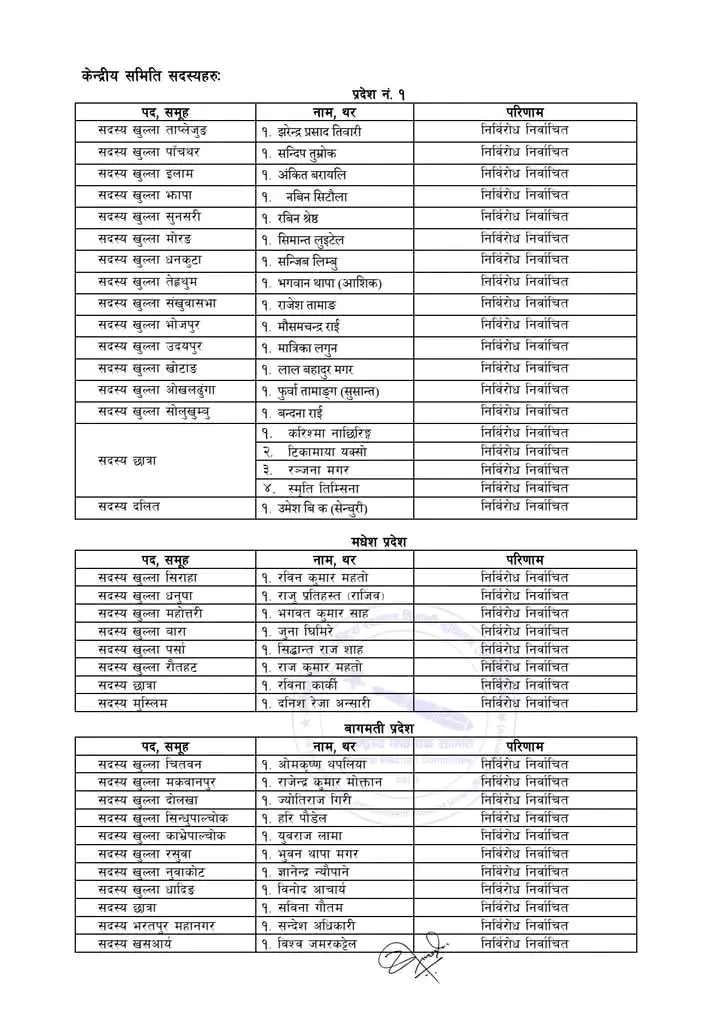 जसअनुसार अध्यक्षका लागि हेमन्त राई, सुदिन पौडेल, विजयप्रकाश शर्मा सापकोटा, योगेन्द्र बुढा र उपदेश यादवको उम्मेदवारी कायम रहेको छ ।