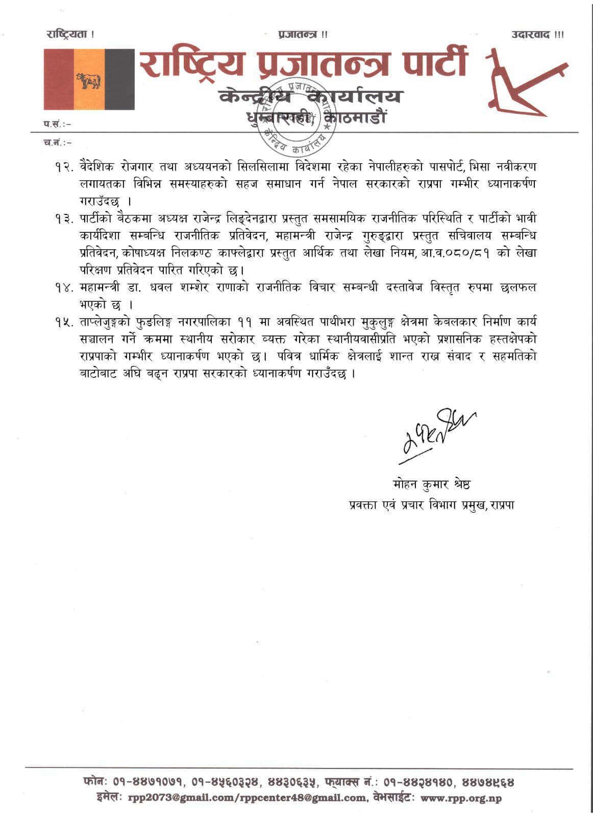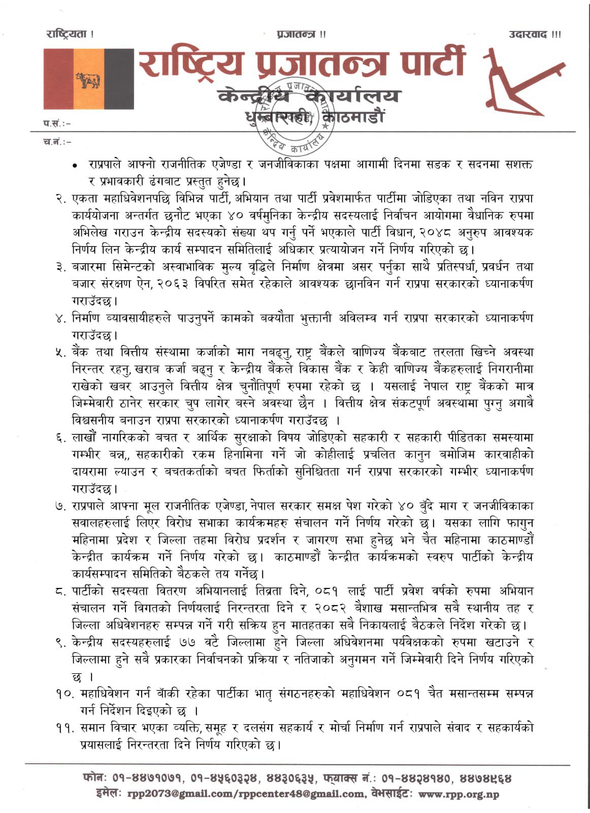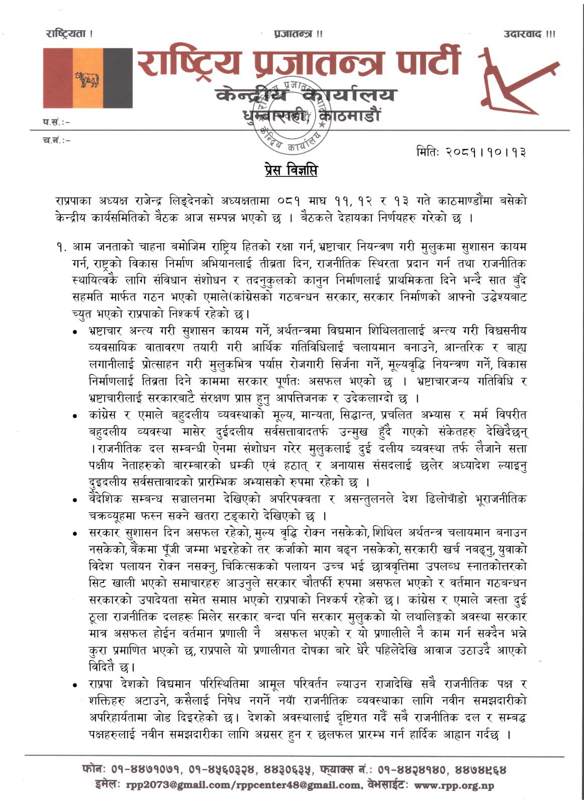 राप्रपा बैठकको निष्कर्षको पूर्णपाठ पढ्नुहोस्