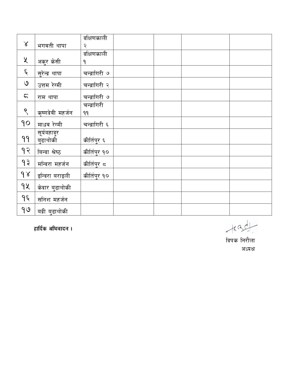 जिल्ला कमिटीमा चन्द्रागिरि-९ की चण्डीका श्रेष्ठ मनाेनित भएकी छन् ।