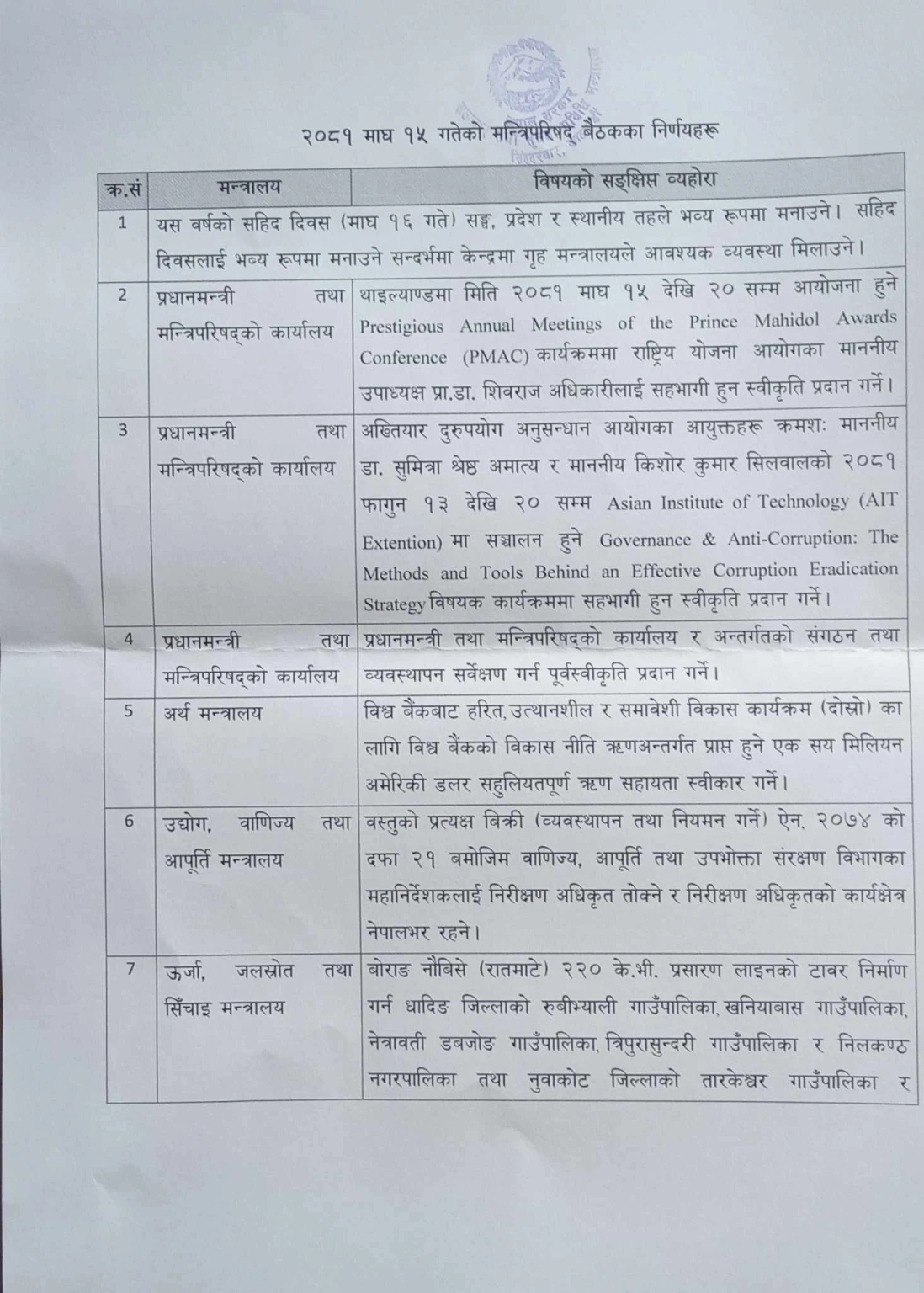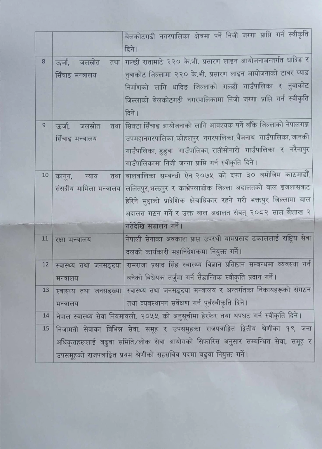यस्ता छन् मन्त्रिपरिषद्का निर्णयहरू