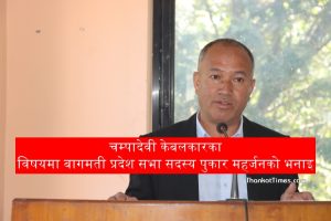थानकोट। बागमती प्रदेश सभा सदस्य पुकार महर्जनले कीर्तिपुर संवृद्ध बनाउन चम्पादेवी केबलकारको निर्माण अपरिहार्य रहेको बताएका छन्। काठमाडाैंको कीर्तिपुर नगरपालिका र दक्षिणकाली नगरपालिकामा संरचना बन्ने गरी चम्पादेवी ईको फ्रेण्डली कम्पनीद्धारा प्रवर्द्धित चम्पादेवी केबलकार आयोजनाको वातावरणीय प्रभाव मूल्यांकनको प्रारम्भिक सार्वजनिक सुनुवाईका क्रममा बागमती प्रदेश सभा सदस्य पुकार महर्जनले सो बताएका हुन् । भिडिवो हेराैंः