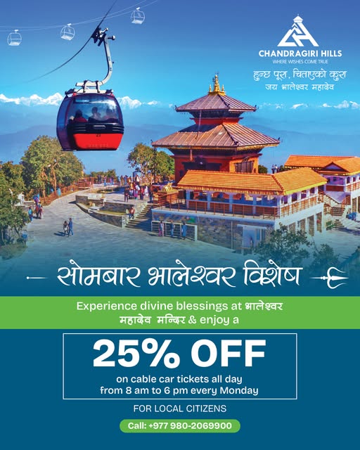 चैत्र महिनाबाट लागु हुने गरि चन्द्रागिरि हिल्सले चन्द्रागिरि केबलकारको टिकटमा सहुलियत दिने भएको छ ।