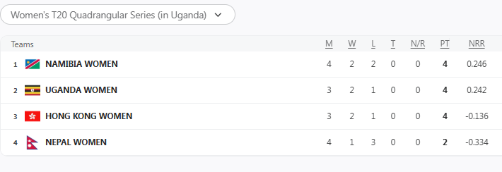 महिला टी-२० आई सिरिज: नेपाल नामिबियासँग पराजित, अंक तालिकामा नेपाल पुच्छरमा