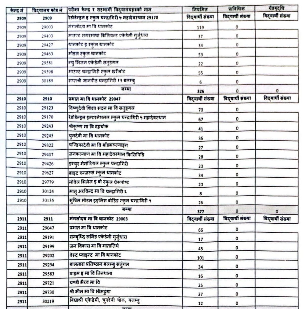 चन्द्रागिरि नगरका कुन परीक्षा केन्द्रमा कति परीक्षार्थी हेर्नुहोस सूचीः