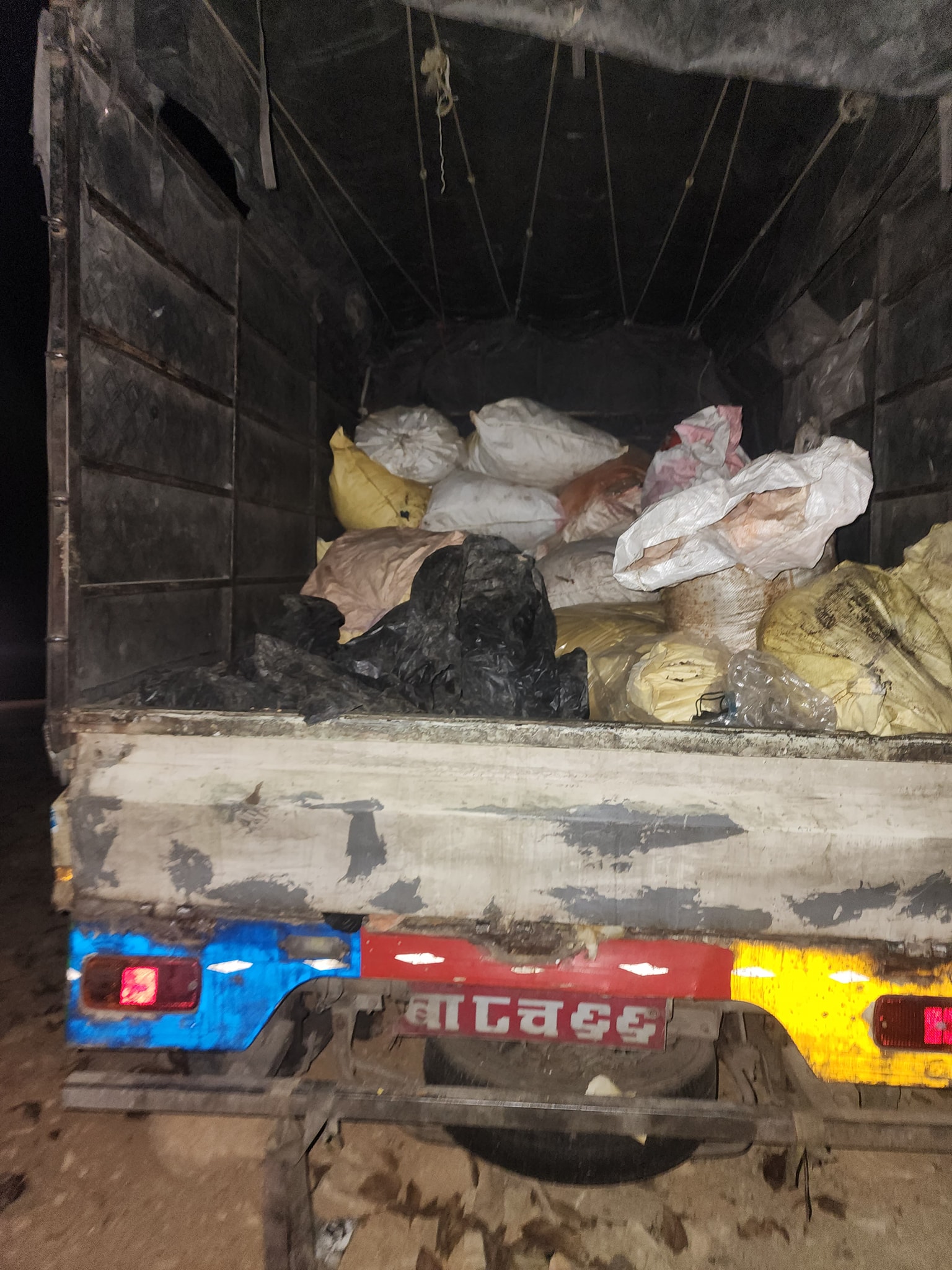 राति वनमा एक गाडी फोहोर फाल्दै थिए, नगर प्रहरीले रंगेहात फेला पारेपछि ५ हजार जरिवाना