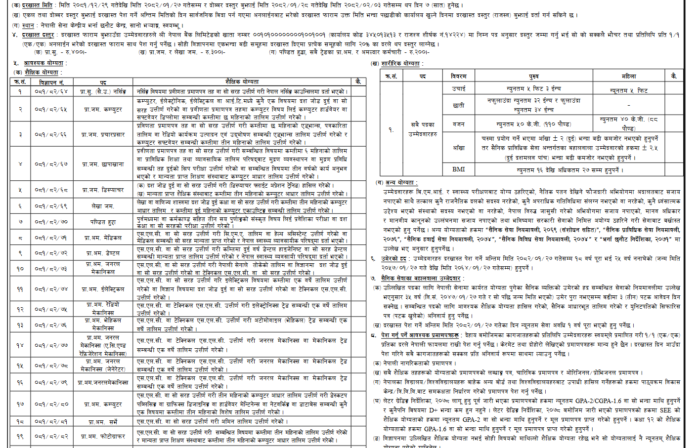 योग्यता पुगेका उम्मेदवारले आजदेखि वैशाख २७ गतेसम्म आवेदन दिन सक्नेछन् भने दोब्बर दस्तुर तिरेर जेठ ३ गतेसम्म आवेदन दिन सक्नेछन् ।