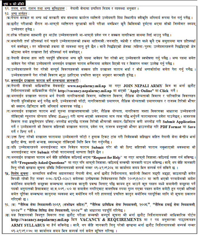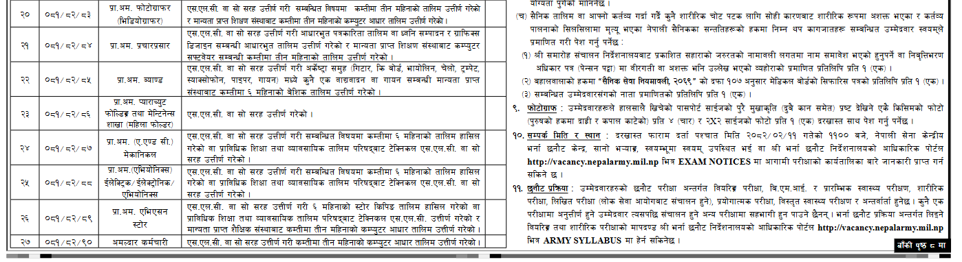 सेनाले शुक्रबार एक सूचना जारी गर्दै प्राविधिक/हवाई/विविध सेवा तर्फका पदिक तथा बिल्लादर पदहरूका लागि भर्ना खुलाएको हो ।