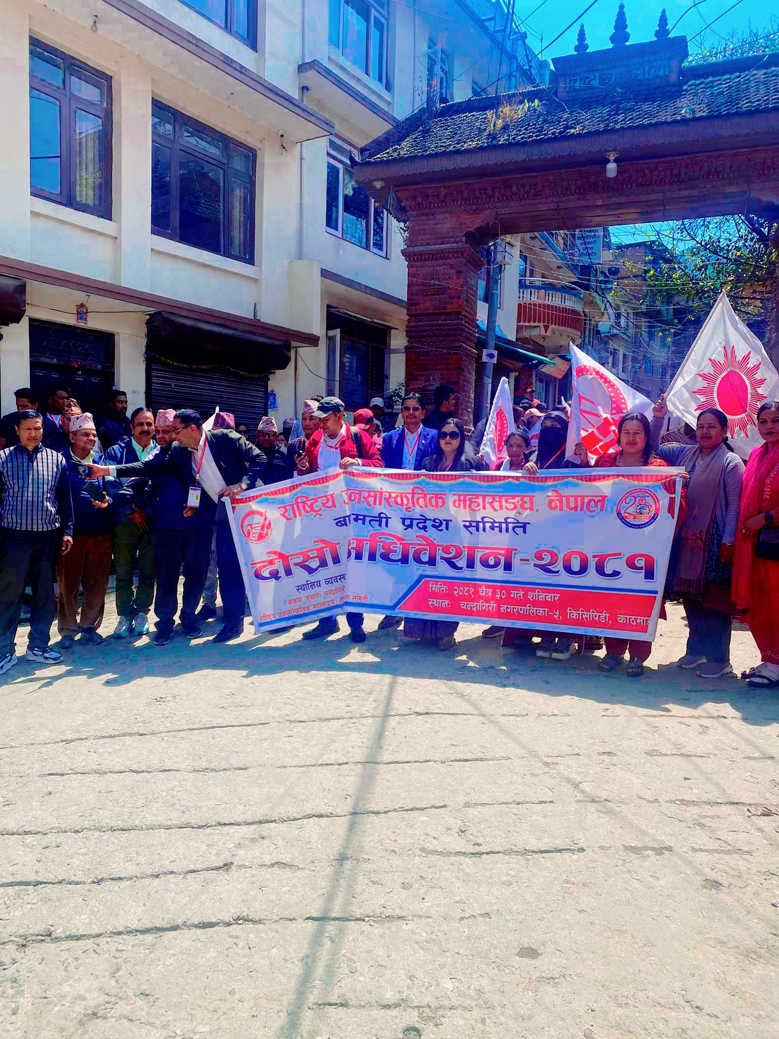 अधिवेशनअघि विभिन्न बाजागाजा तथा भेषभूषामा सजिएका सहभागीहरूले वडा परिक्रमा गरेका थिए ।