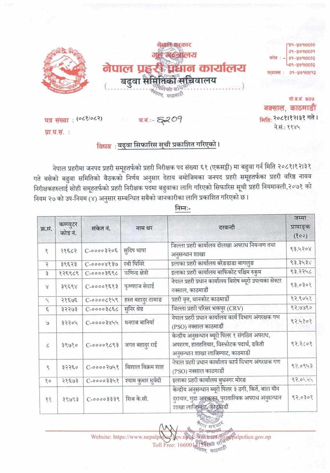 लामो तयारीपछि प्रकाशित बढुवा सिफारिसमा २०५८ सालदेखि २०६१ सालमा भर्ना भएका असई टोली समावेश गरिएको छ ।