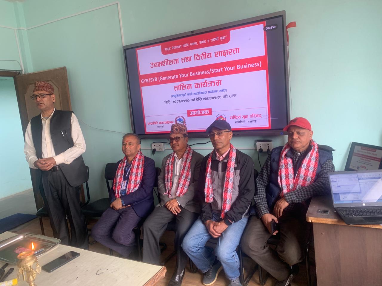 चन्द्रागिरि नगरपालिका र राष्ट्रिय युवा परिषदको संयुक्त आयोजनामा बुधबारबाट चन्द्रागिरि नगरपालिकामा उद्यमशीलता तथा वित्तिय साक्षरता सम्बन्धी ७ दिने तालिम सुरु भएको छ ।