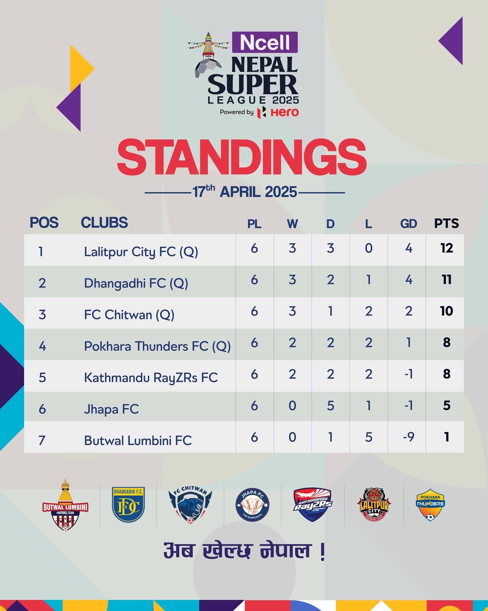 चौथो स्थानमा रहेको पोखरा थन्डर्ससँग समान आठ अङ्क रहे पनि गोल अन्तरमा पछि पर्दै काठमाण्डौ बाहिरिएको हो ।