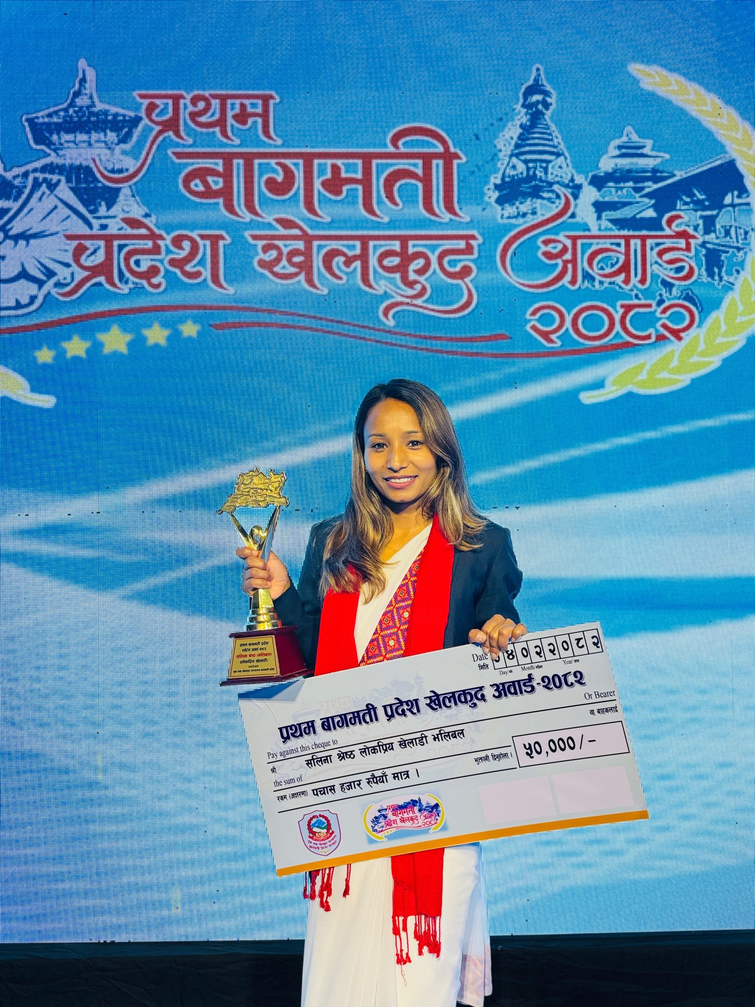 बागमती प्रदेश स्पोर्टस अवार्डः नैकापस्थित न्यू डायमण्डकी सलिनालाई लोकप्रिय खेलाडी अवार्ड