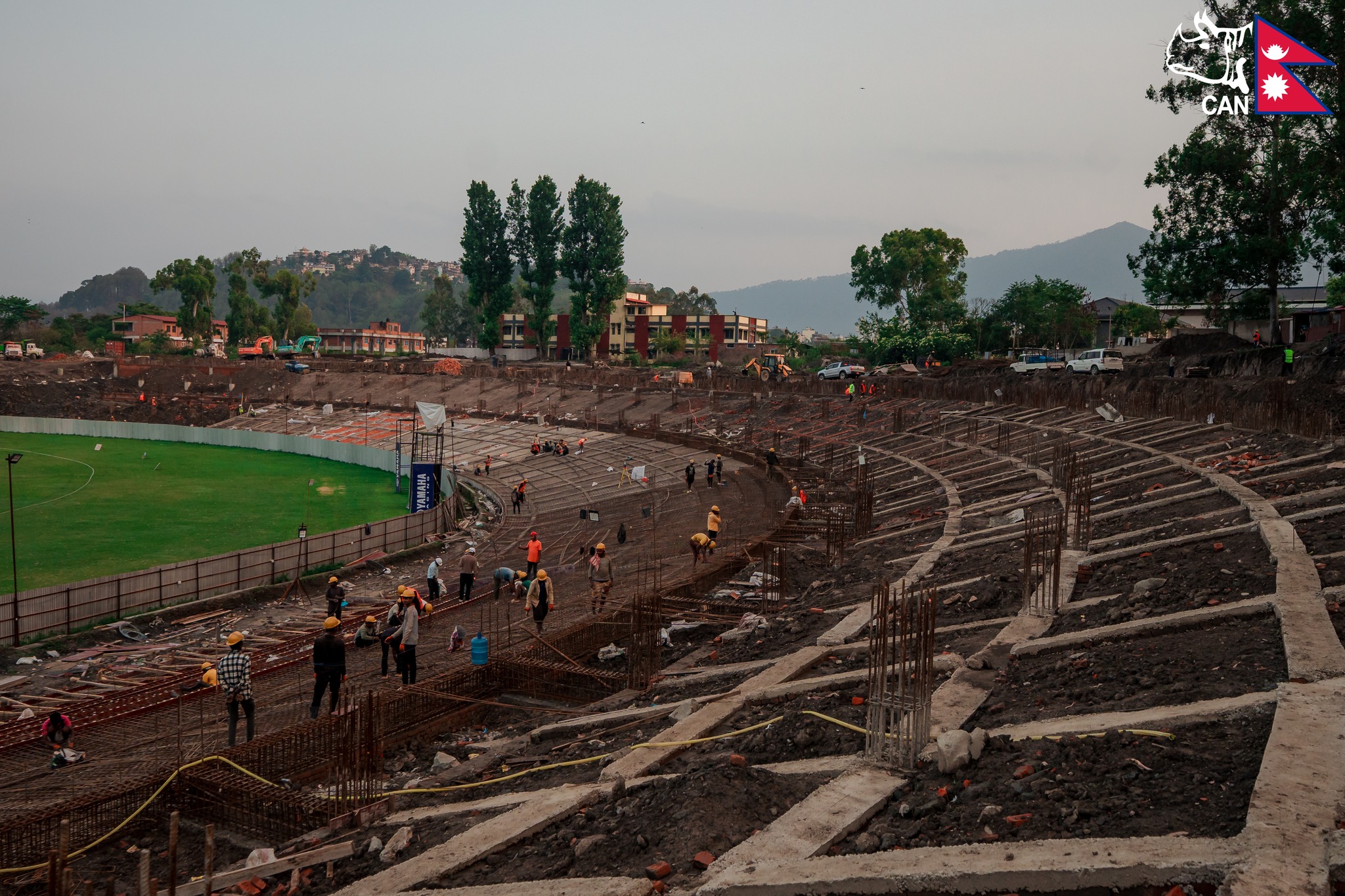 कीर्तिपुरस्थित क्रिकेट मैदानको काम धमाधम चलिरहेको छ ।