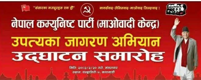 नेपाल कम्युनिस्ट पार्टी (माओवादी केन्द्र) ले आजबाट जागरण अभियान थालनी गर्दैछ ।