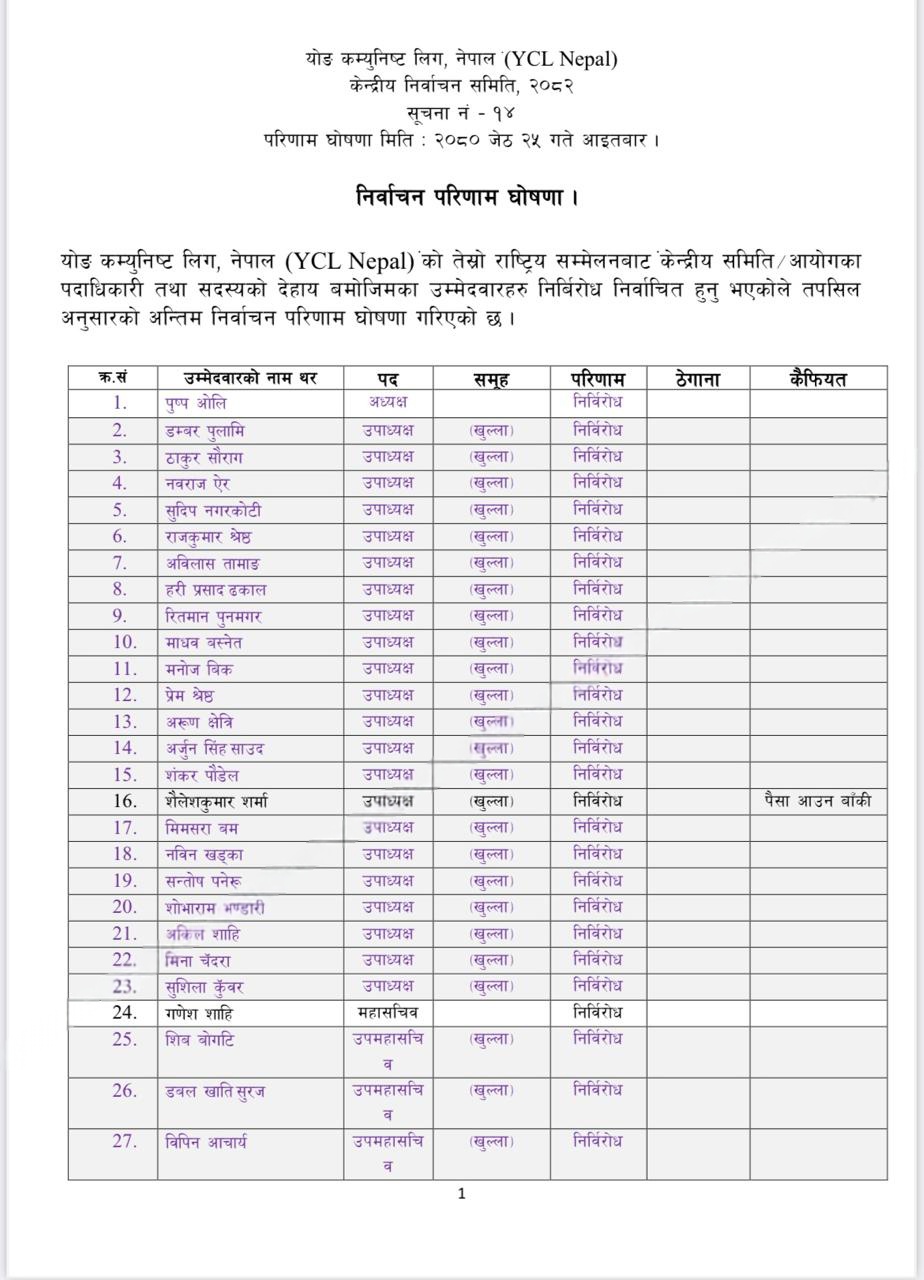 सर्वसम्मत नेतृत्व चयन गर्नको लागि वाइसीएलले पदाधिकारीको संख्या बढाएको हो।