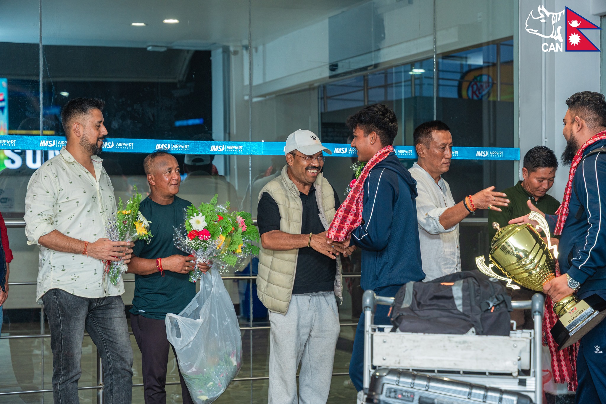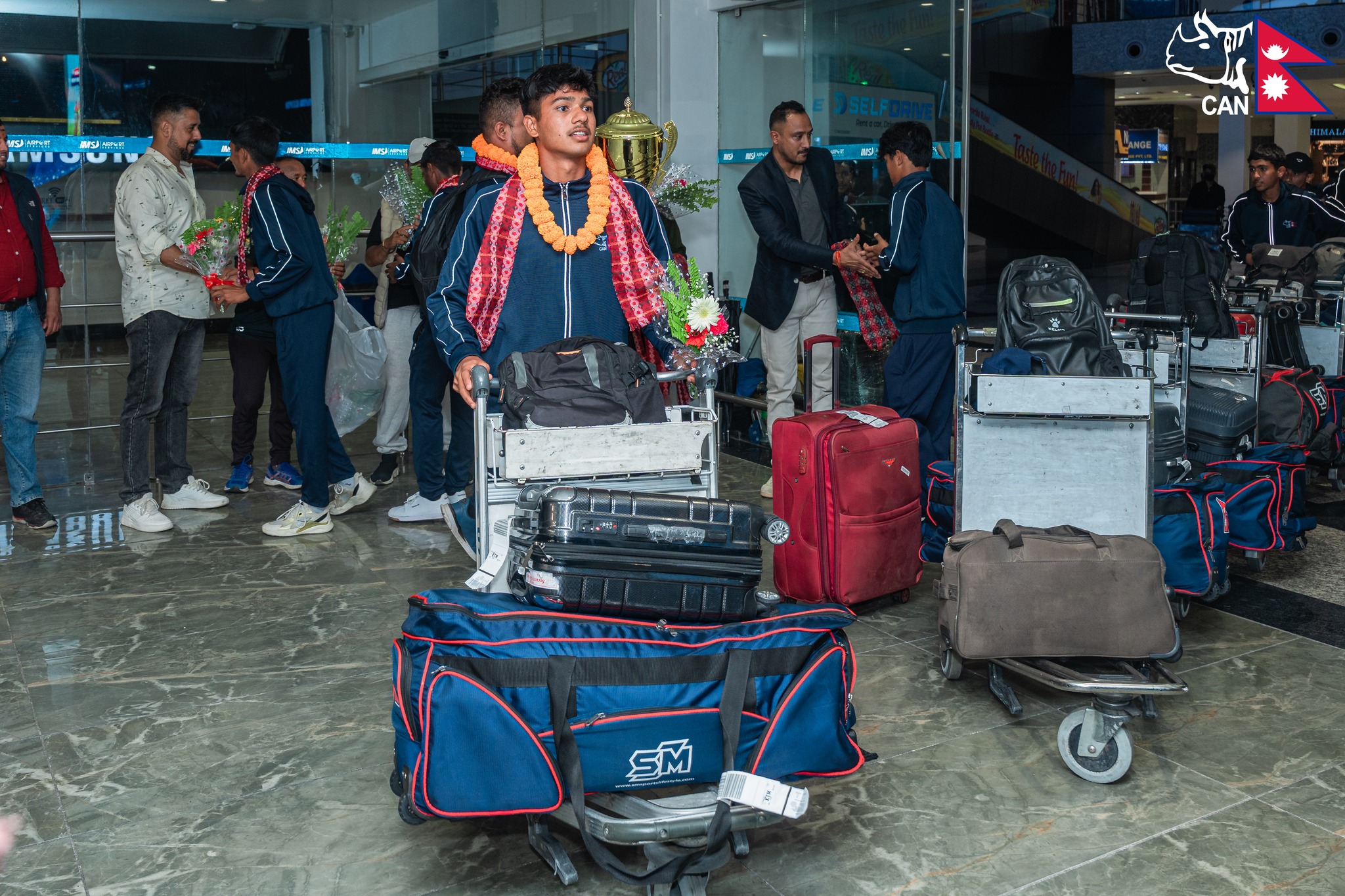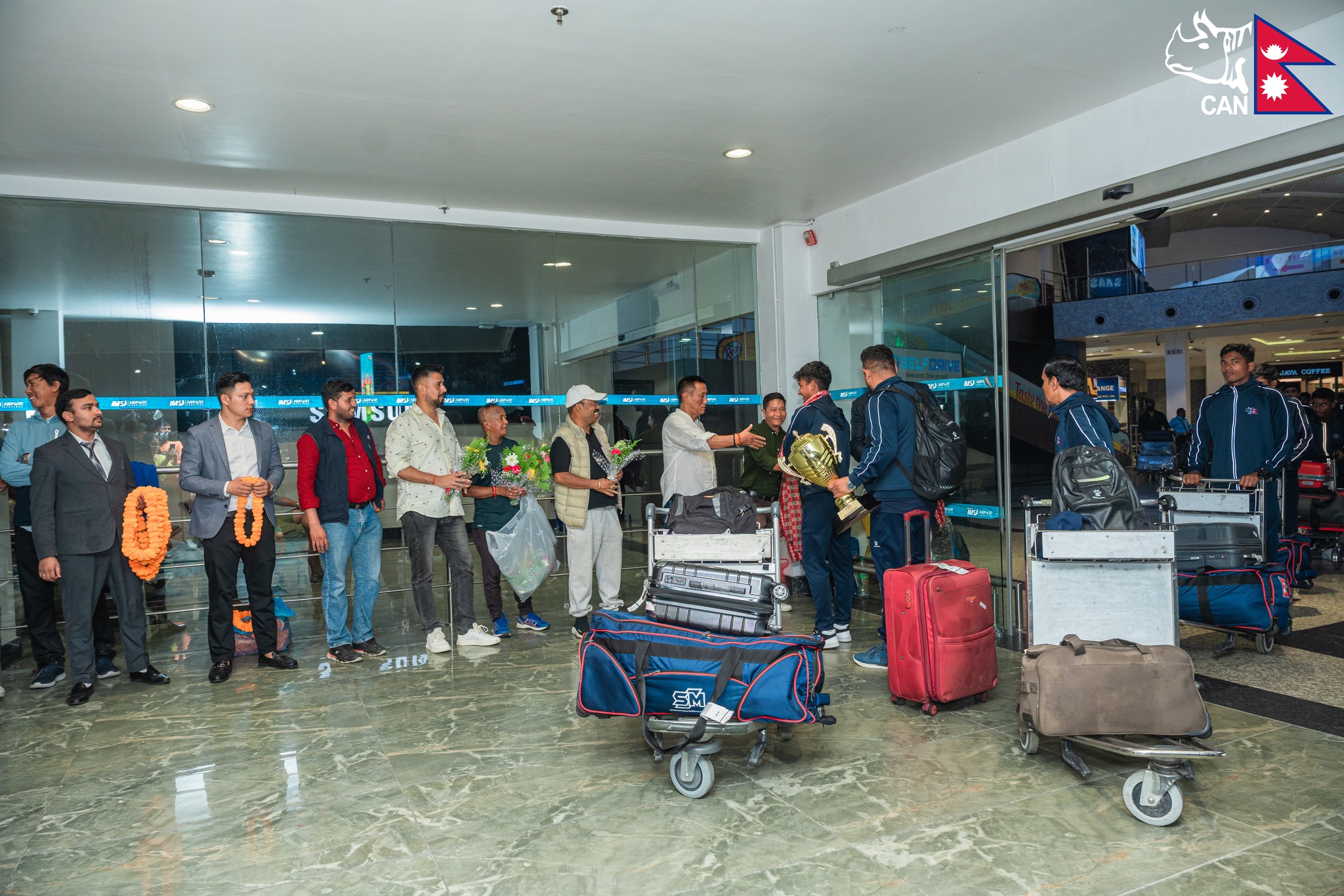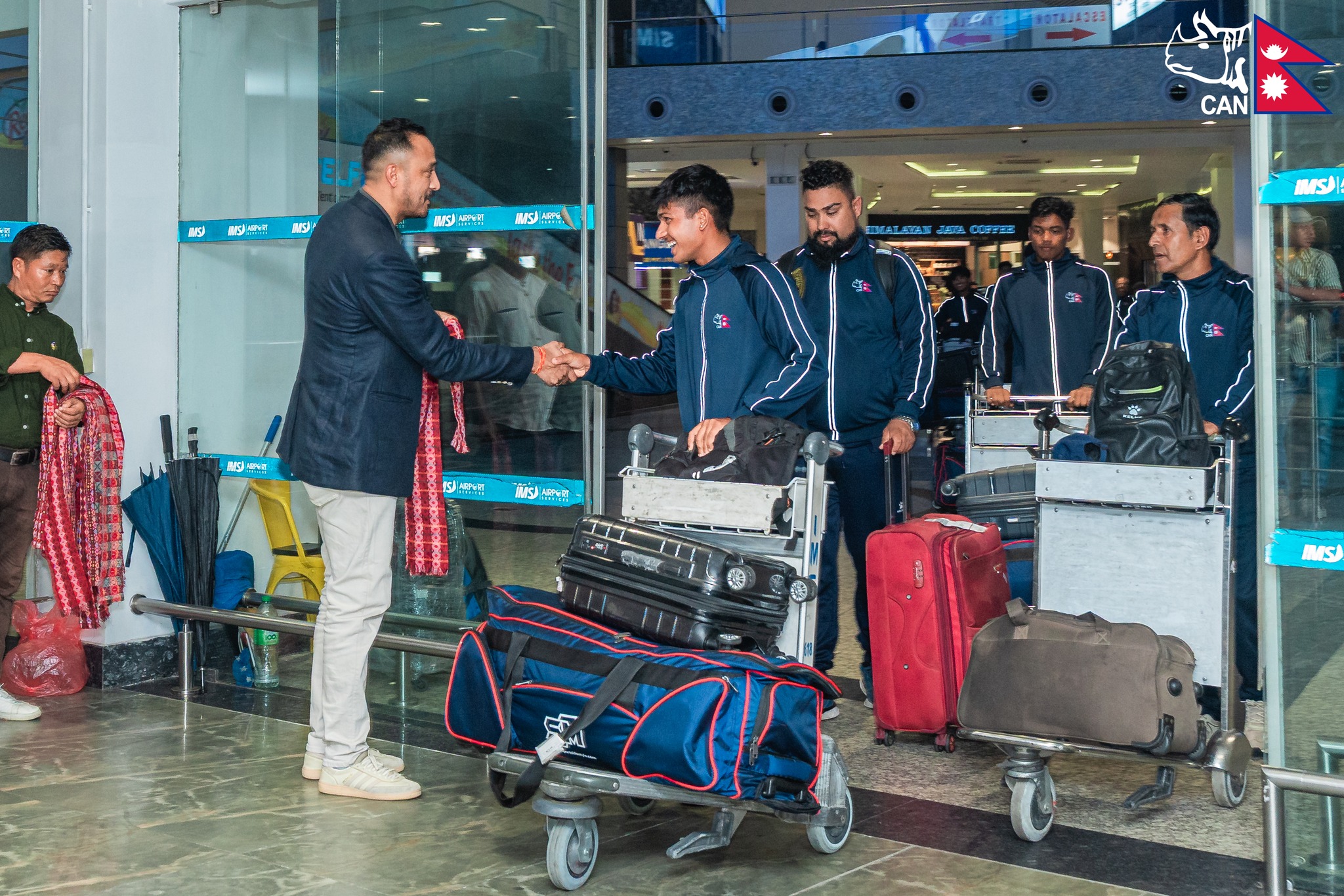 खेलाडीहरूलाई नेपाल क्रिकेट संघ (क्यान)का सचिव पारस खड्का लगायतले त्रिभुवन अन्तर्राष्ट्रिय विमानस्थलमा स्वागत गरे ।