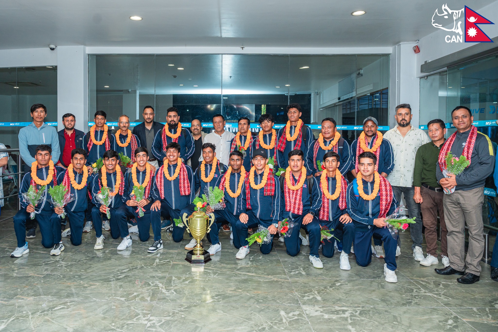 एसीसी पुरुष यू-१६ इस्ट जोन कपको च्याम्पियन बनेको नेपाली टोली स्वदेश फर्किएको छ ।