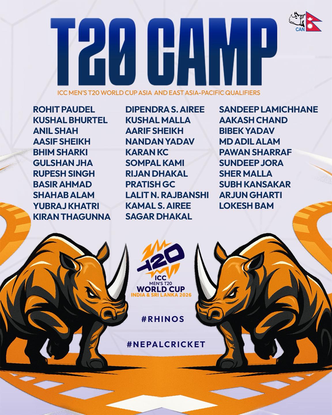 नेपाल क्रिकेट संघ (क्यान)ले टी-२० विश्वकपको एसिया तथा पूर्वी एसिया-प्यासिफिक क्वालिफायरका लागि ३२ सदस्यीय क्लोज क्याम्पको घोषणा गरेको छ ।