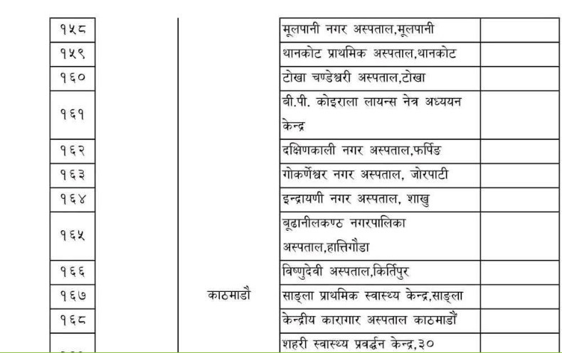 बोर्डले थानकोटस्थित चन्द्रागिरि नगर प्राथमिक अस्पताललाई समेत प्रथम सेवा विन्दु तोकेको छ ।