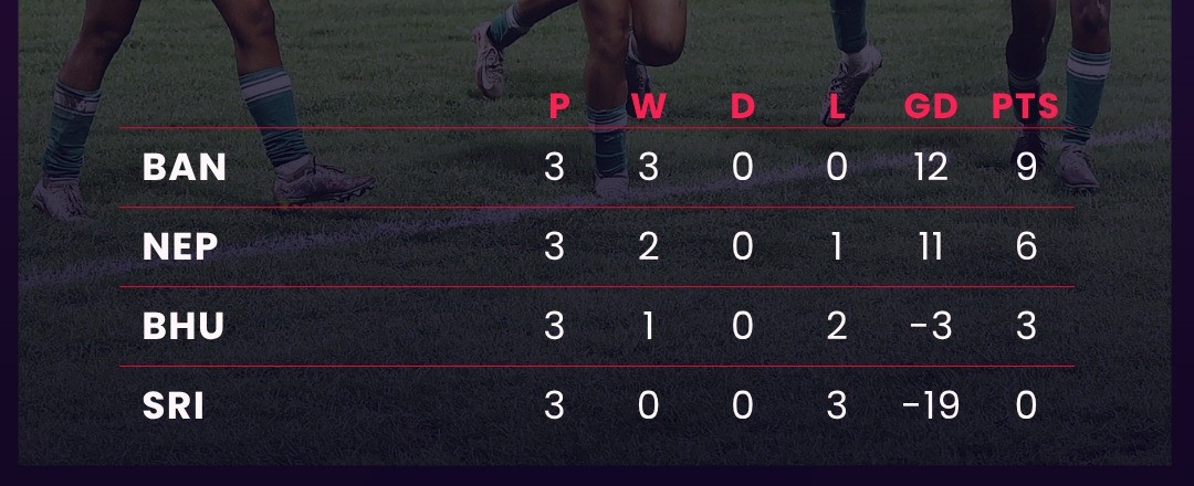 लिग चरणमा शीर्ष स्थानमा रहने टोलीले उपाधि जित्नेछ । अब नेपालले बिहीबार श्रीलङ्कासँग, साउन ३ गते भूटानसँग र साउन ५ गते बङ्गलादेशसँग खेल्नेछ ।