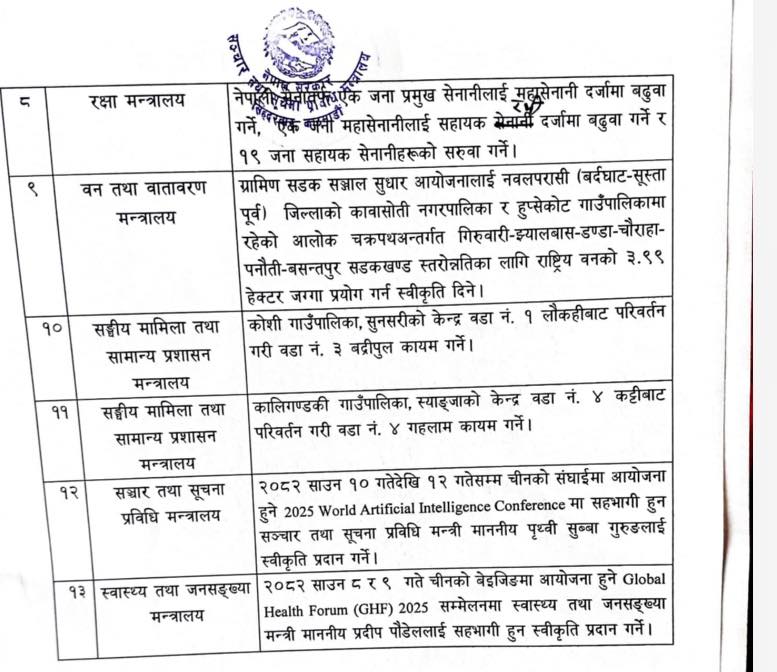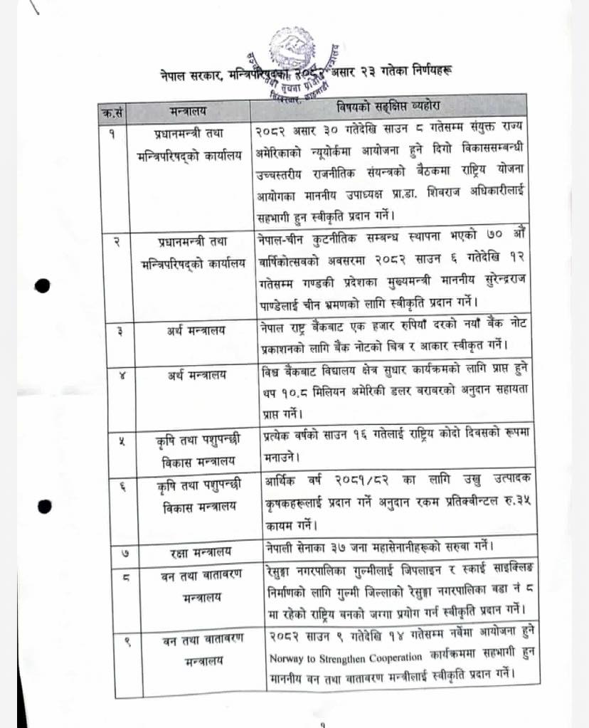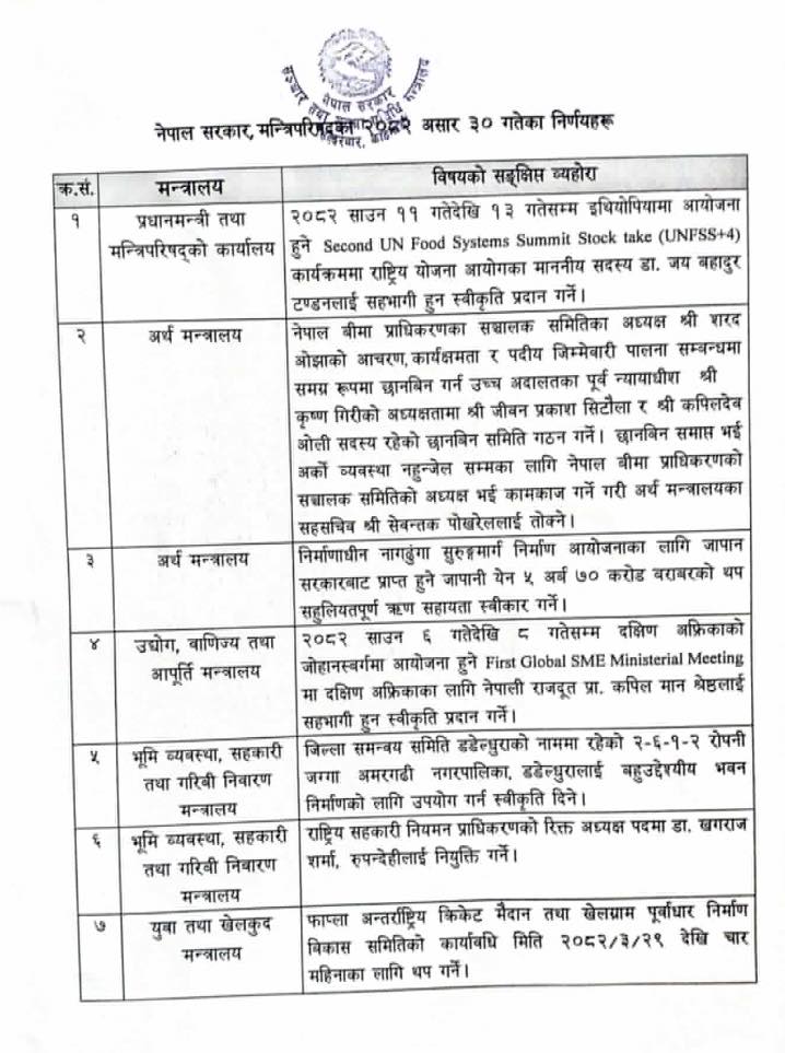 असार २३ मा र असार ३० मा बसेको मन्त्रिपरिषद् बैठकले के-के निर्णय गर्यो हेर्नुहोस्: