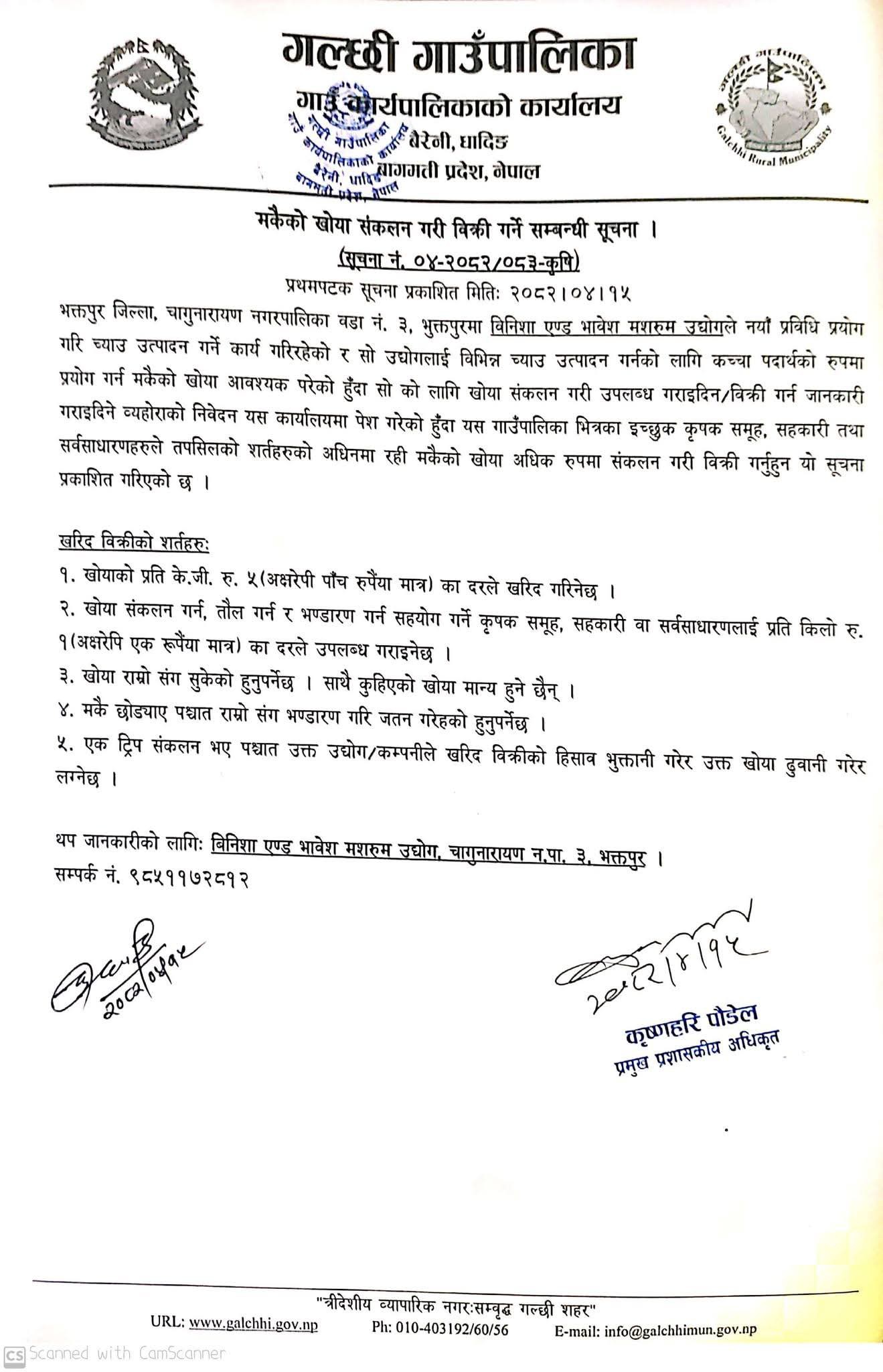मकैको खोया नफाल्नुस, धादिङको गल्छी गाउँपालिकामा ५ रुपैयाँ किलोमा खोया बिक्री हुने