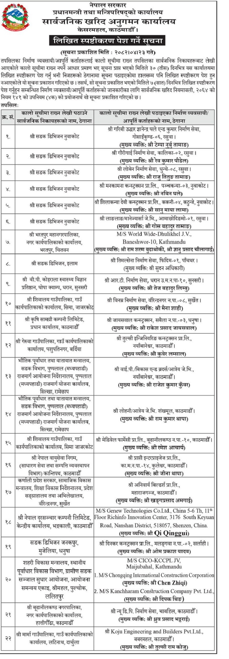 स्पष्टीकरणको जवाफ नबुझाएका कम्पनीहरूको सूची आज सार्वजनिक गर्दै सरकारले ती कम्पनीहरूलाई सात दिनभित्र लिखित स्पष्टीकरण बुझाउन भनेको छ ।