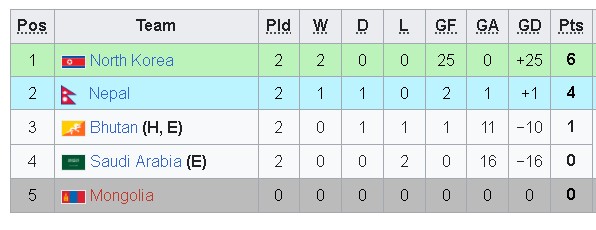 उत्तर कोरियाले पहिलो खेलमा साउदी अरेबियालाई १५–० को ठुलो अन्तरले हराएको थियो भने दोस्रो खेलमा भुटानलाई १०–१ गोलले पराजित गरेको थियो ।