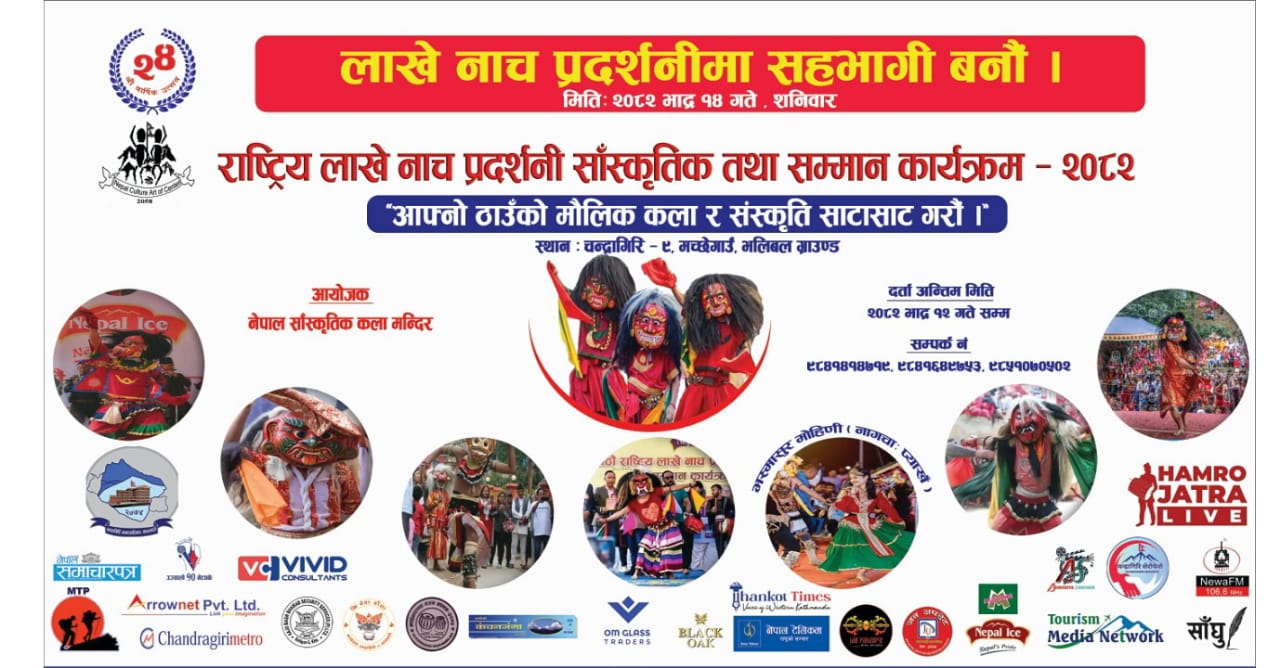 लाखे नाचमा सहभागी हुन चाहने इच्छुक समूह तथा व्यक्तिहरूले भदाै १२ गतेभित्र नाम दर्ता गर्न सक्ने जनाइएको छ ।