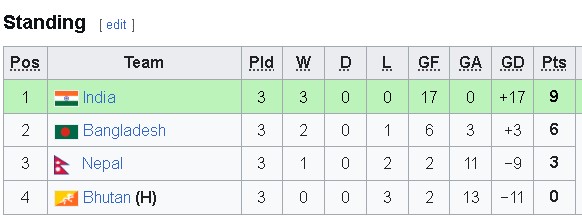 यस अघि भएको खेलमा नेपाल बंगलादेशसँग ३-० गोलले पराजित भएको थियो । नेपालको तीन खेलमा तीन अंकसहित तेस्रो स्थानमा छ ।