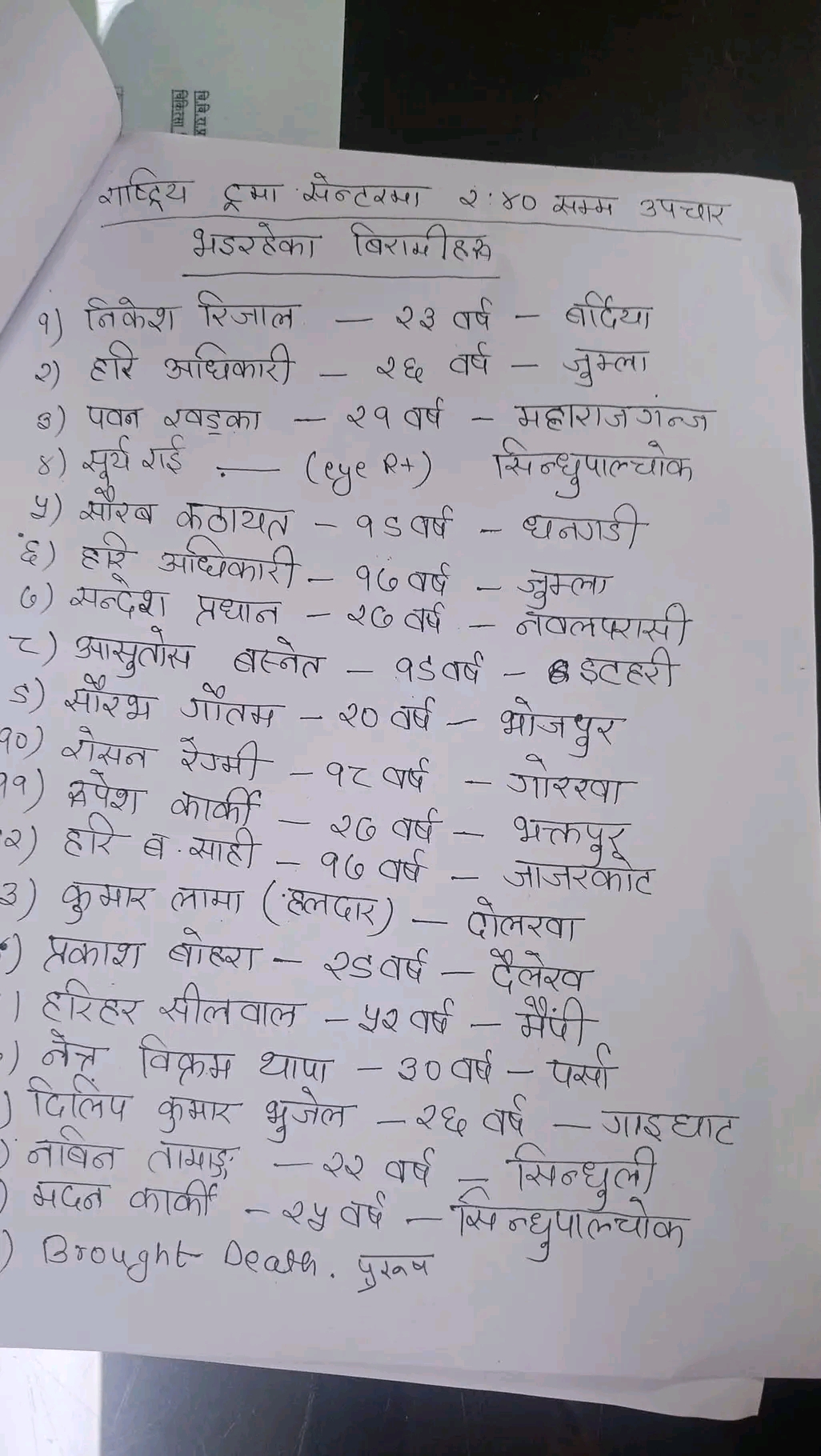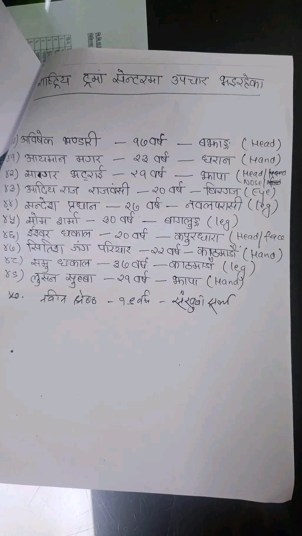 अस्पतालहरूले उपचाररत घाइतेहरूको विवरण सार्वजनिक गरेका छन् ।