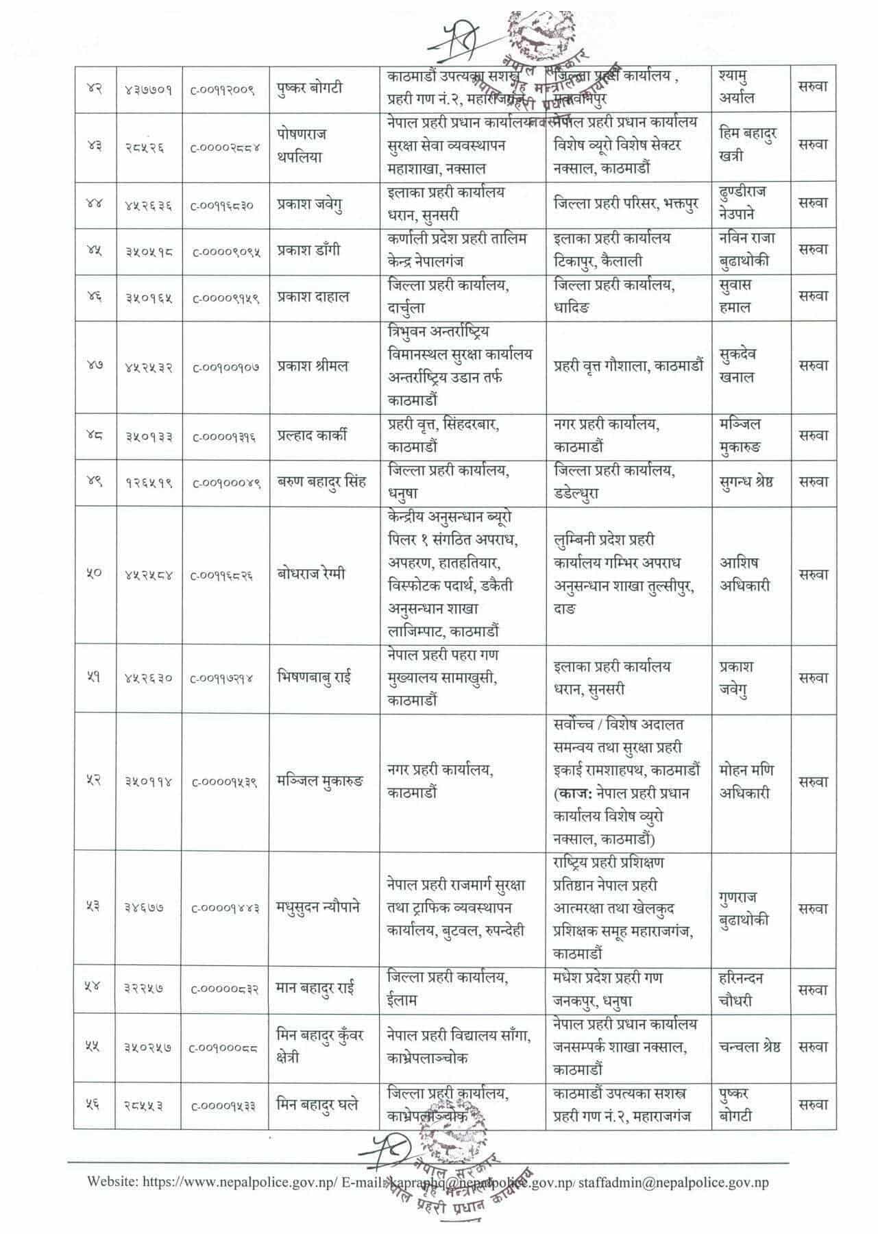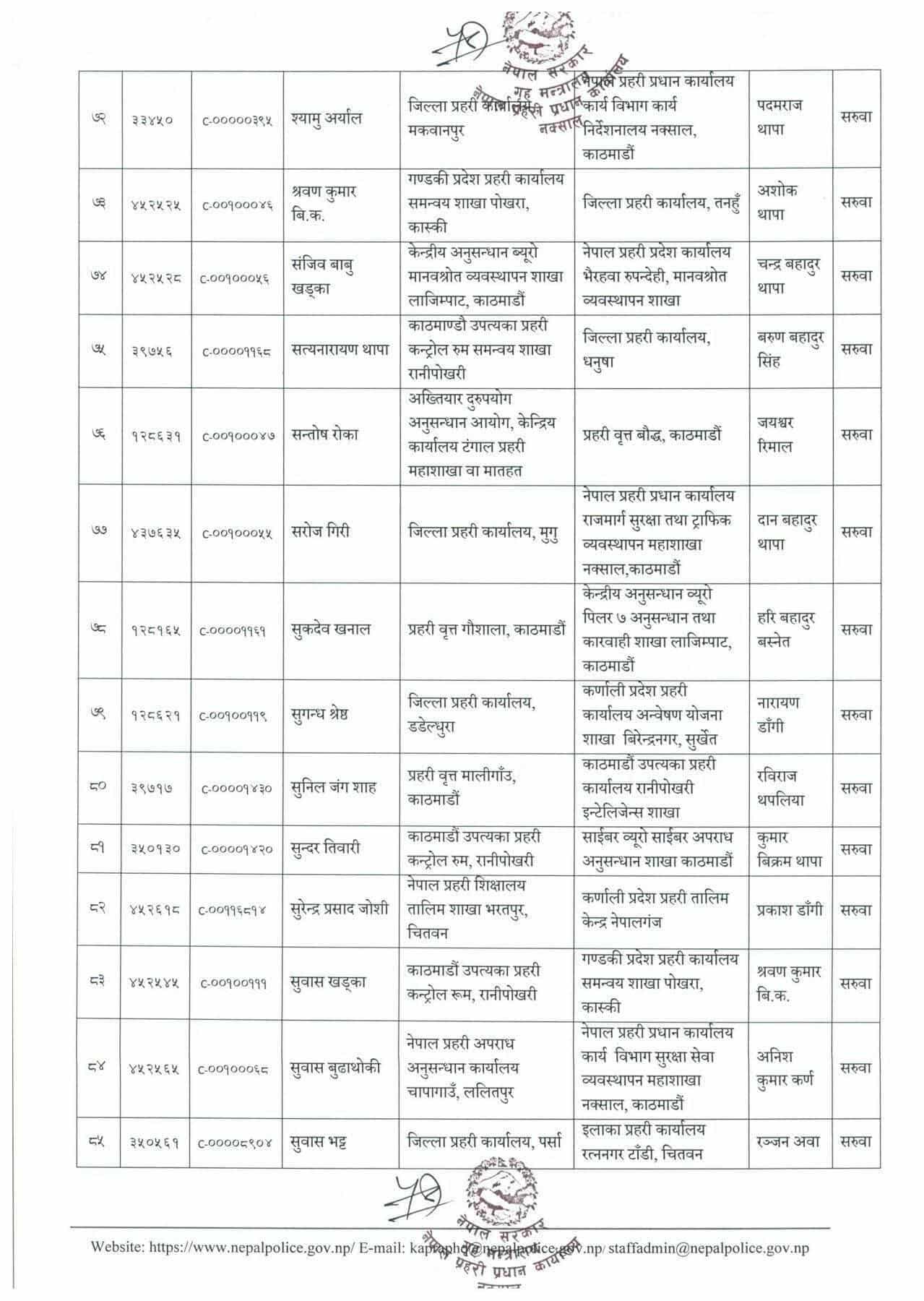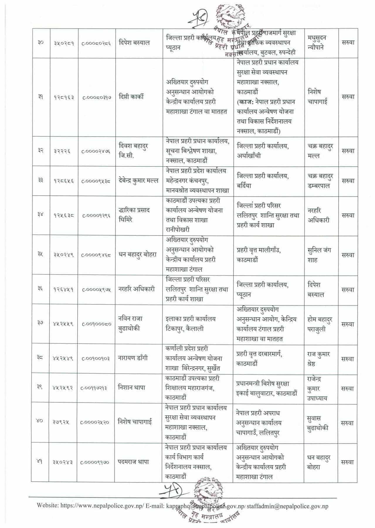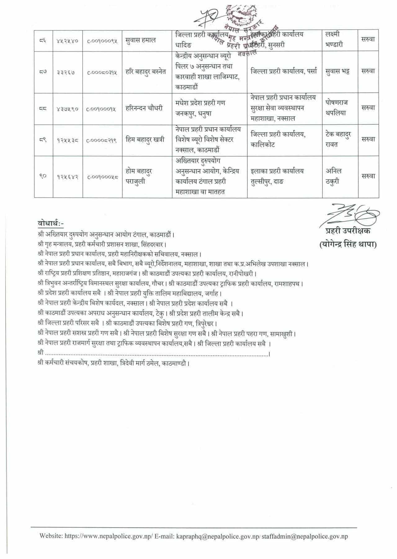 नेपाल प्रहरीका ९० डीएसपीको सरुवा, काठमाडाैंका केही वृत्तका कमाण्डर फेरिए