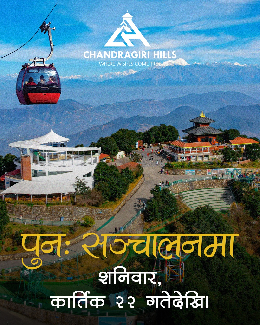 चन्द्रागिरि हिल्सले बुधबार एक विज्ञप्ति जारी गर्दै कार्तिक २२ गतेबाट केबलकार सेवा सुचारु हुन लागेको जनाएको हो ।