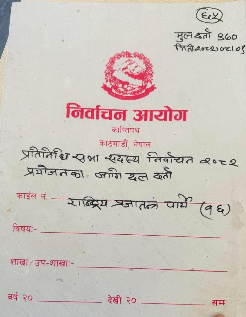 फागुन २१ मा हुने प्रतिनिधि सभा निर्वाचन प्रयोजनका लागि राप्रपाले गर्यो दल दर्ता