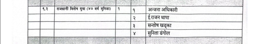 यस्तै विभिन्न क्लष्टरमा पनि निर्धारित संख्या भन्दा धेरैको उम्मेदवारी परेपछि उनीहरूको पनि मतदान प्रकृयाबाटै नाम छिनोफानो हुने भएको छ ।