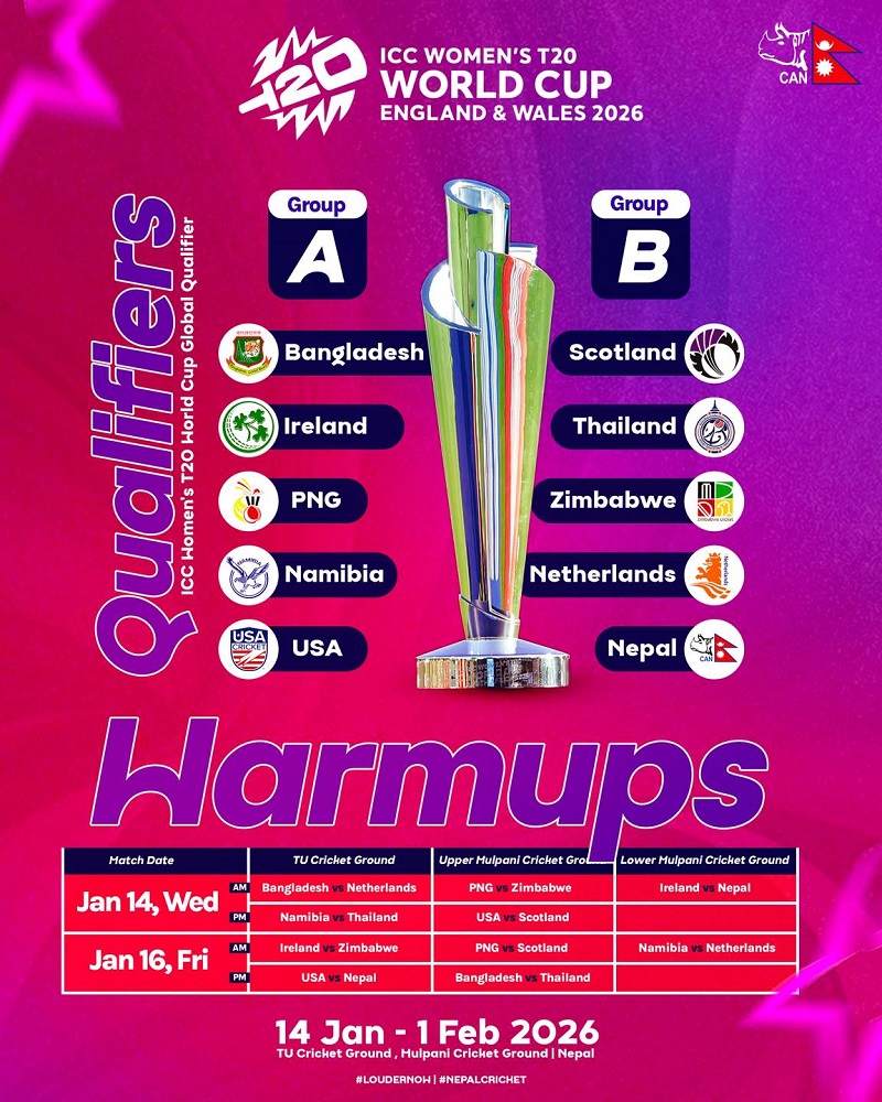 काठमाडाैंमा हुने महिला टी-२० विश्वकप छनोटको खेलतालिका सार्वजनिक