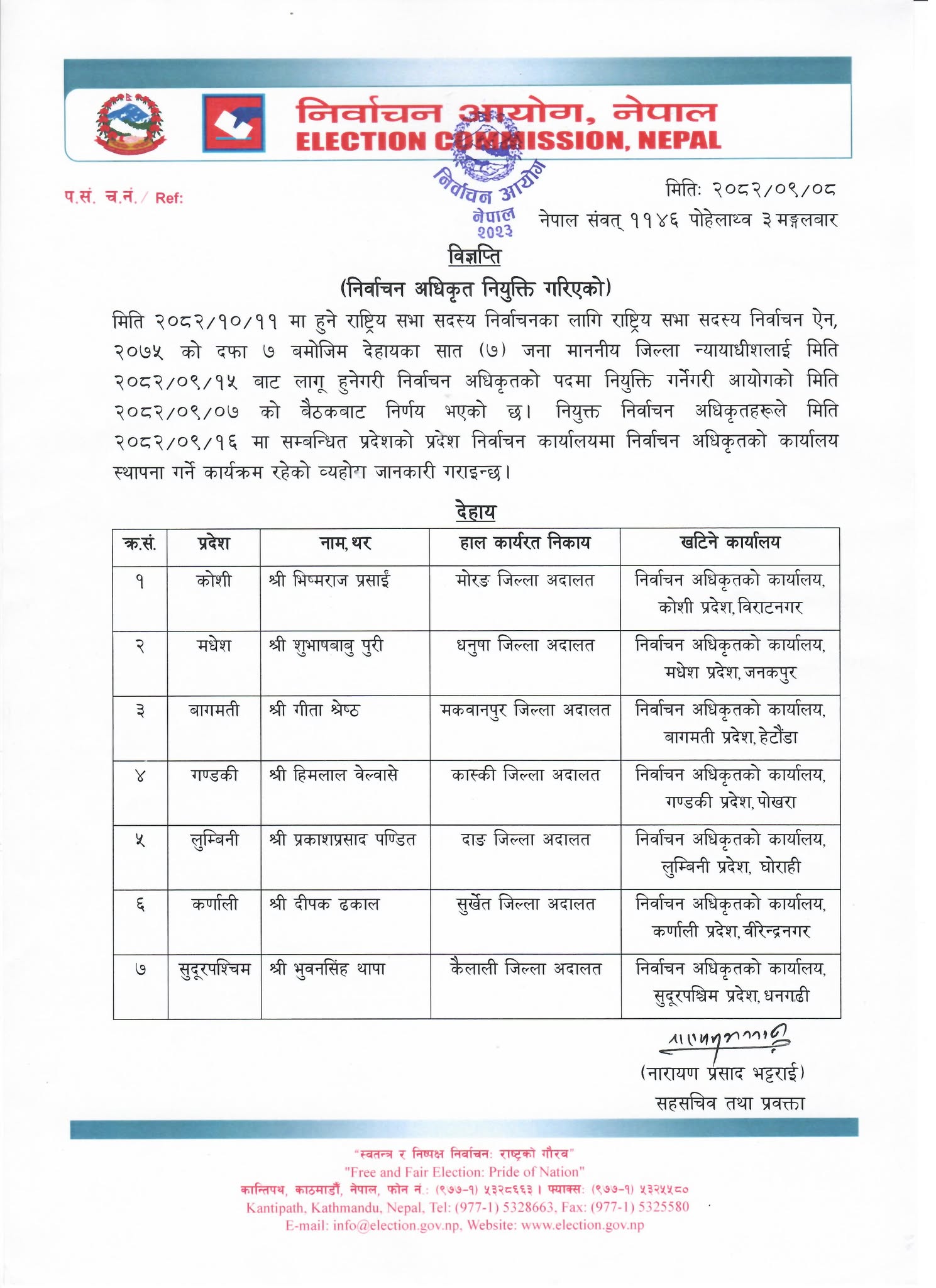 राष्ट्रिय सभा निर्वाचनका लागि सात वटै प्रदेशमा निर्वाचन अधिकृत नियुक्त