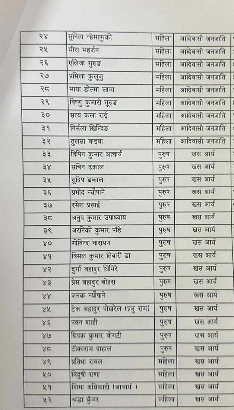 रास्वपा समानुपातिक तर्फको बन्द सूची हेराैं