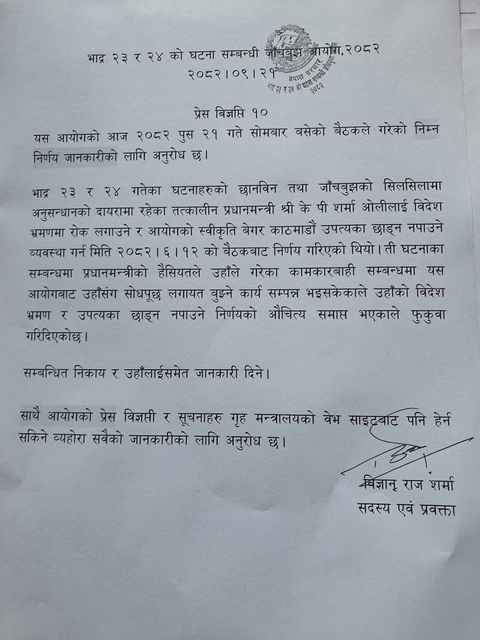 भदौ २३ र २४ मा भएको जेनजी आन्दोलनका बारेमा छानबिन गर्न पूर्वन्यायाधीश गौरीबहादुर कार्कीको नेतृत्वमा आयोग बनेको थियो ।