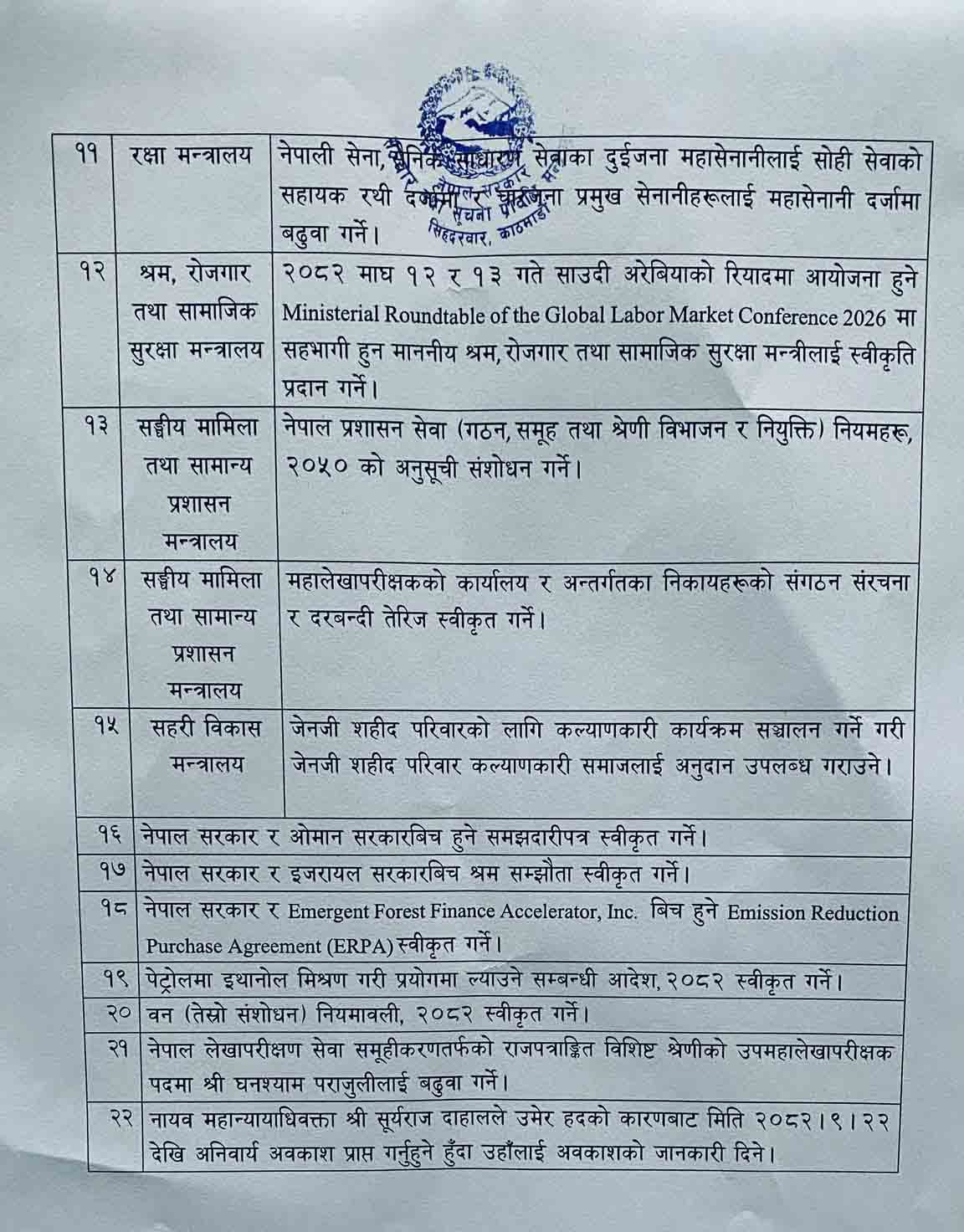 मन्त्रिपरिषद्का ३५ निर्णय सार्वजनिक