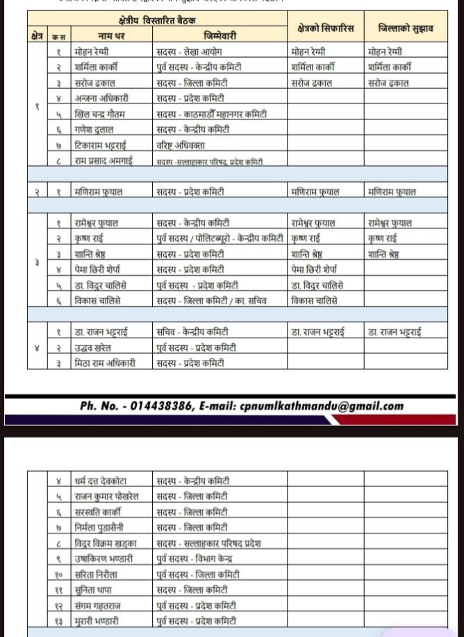 जिल्ला अध्यक्ष दीपक निरौलाका अनुसार क्षेत्रबाट आएका नामका आधारमा जिल्लाले केन्द्रमा प्रस्ताव गरेको हो ।