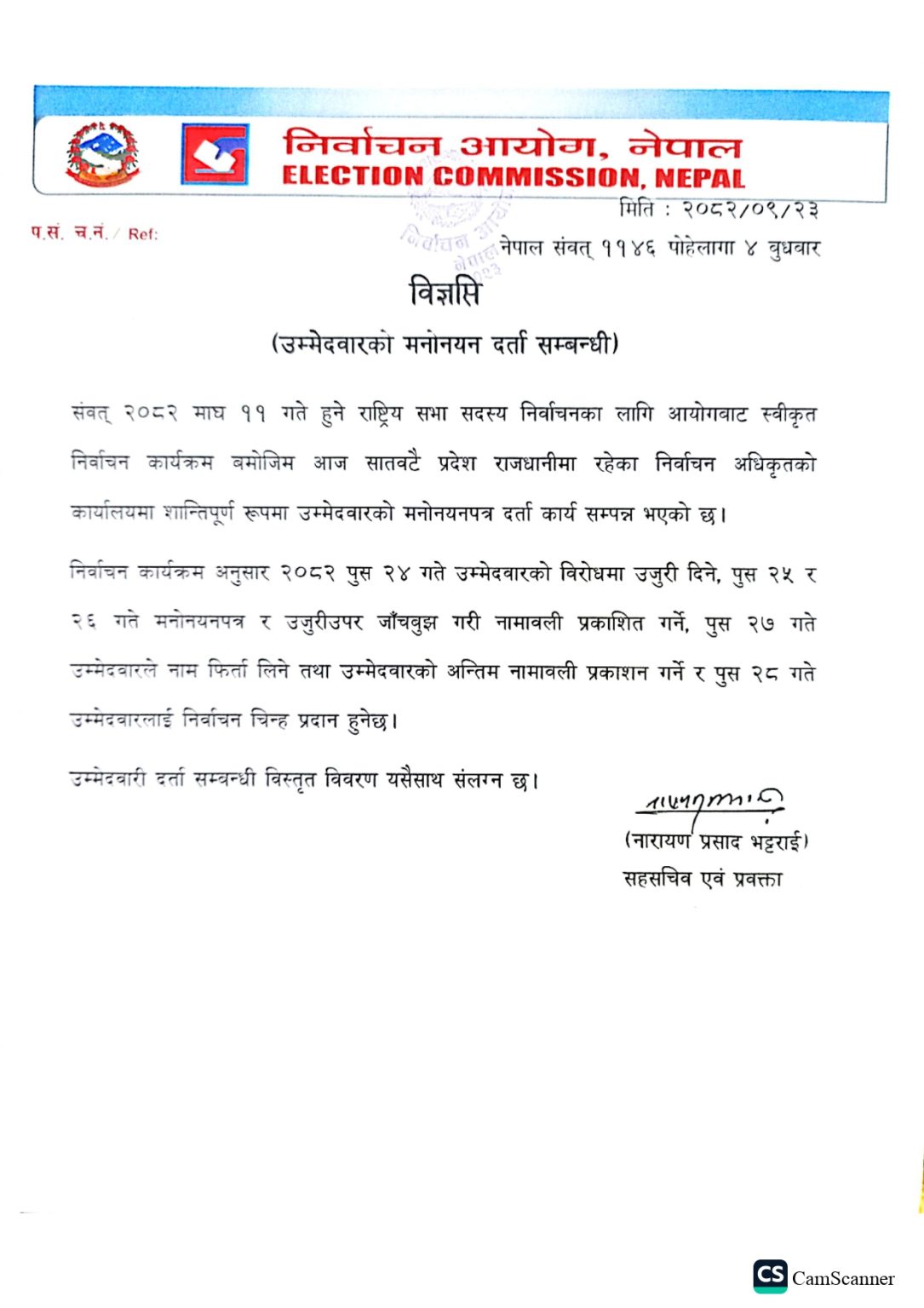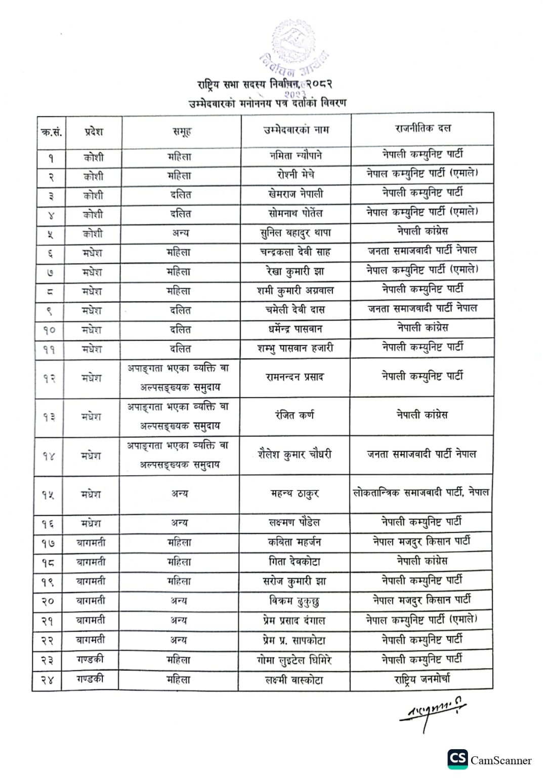 बुधबार आयोगले जारी गरेको विज्ञप्ति अनुसार १८ सिटको लागि ४४ जनाको मनोनयन परेको हो ।