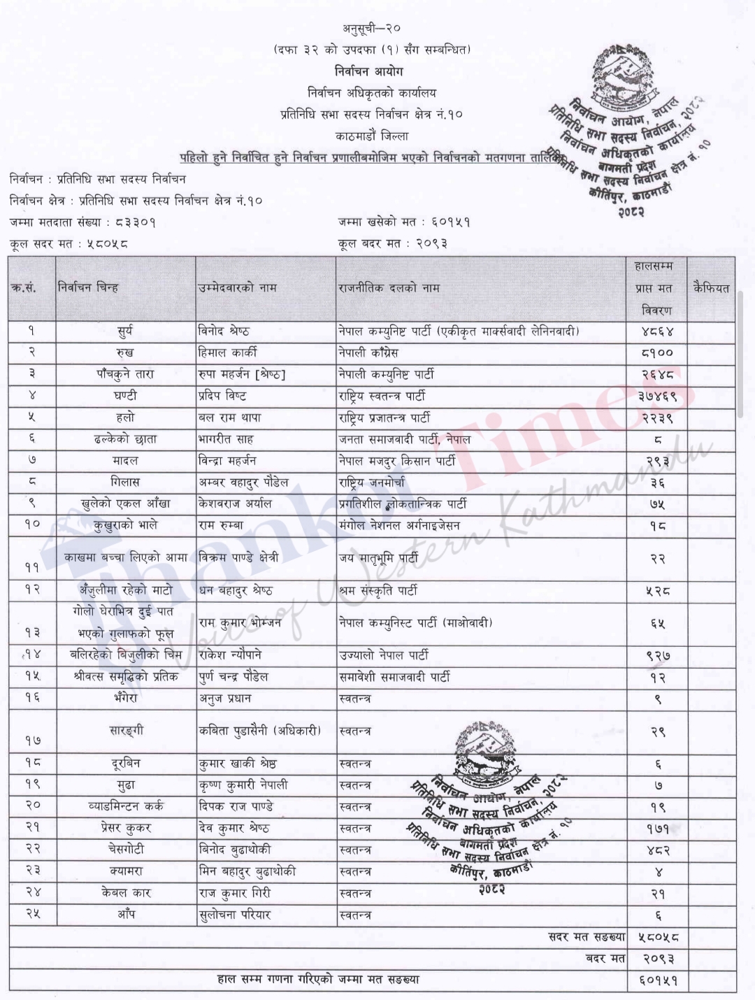 यस्तो छ अन्तिम मत परिणाम
