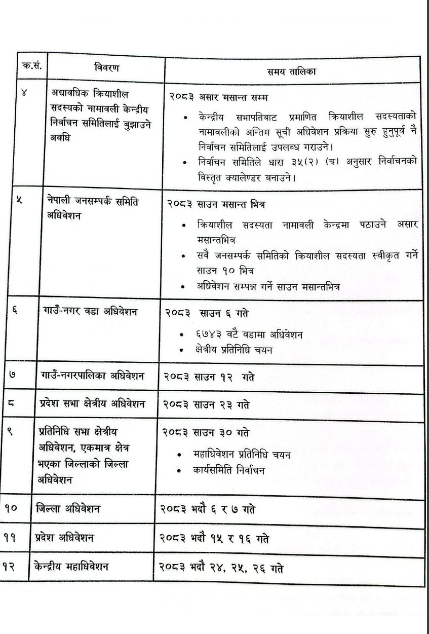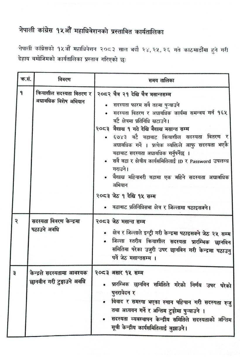 यस्ताे छ कांग्रेसको १५औँ महाधिवेशनको प्रस्तावित तालिका