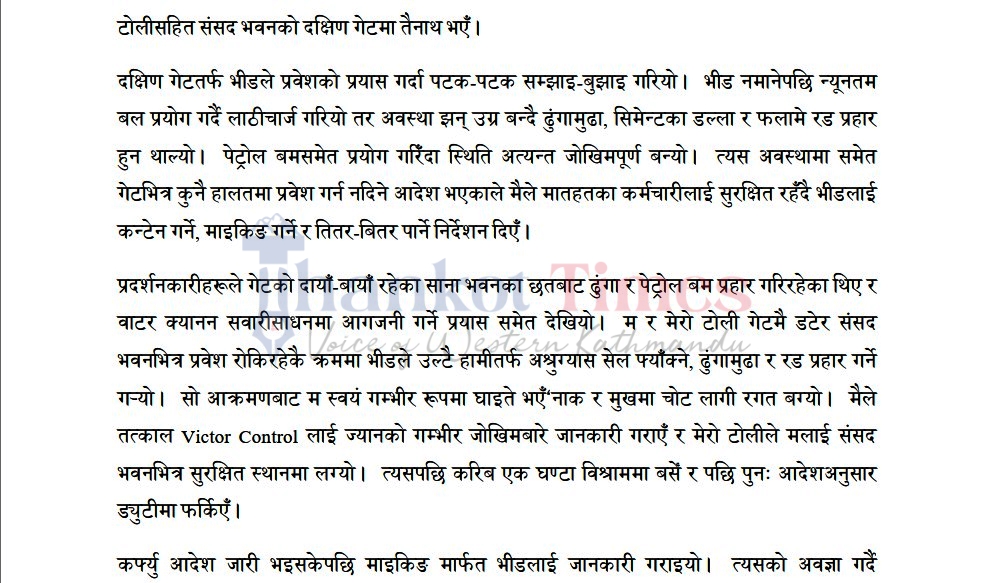 यसैगरी वृत्त थानकोटमा कार्यरत अन्य २ जना प्रहरी कर्मचारीहरूसँग पनि आयोगले बयान लिएको विषयले प्रतिवेदनमा ठाउँ पाएको छ।