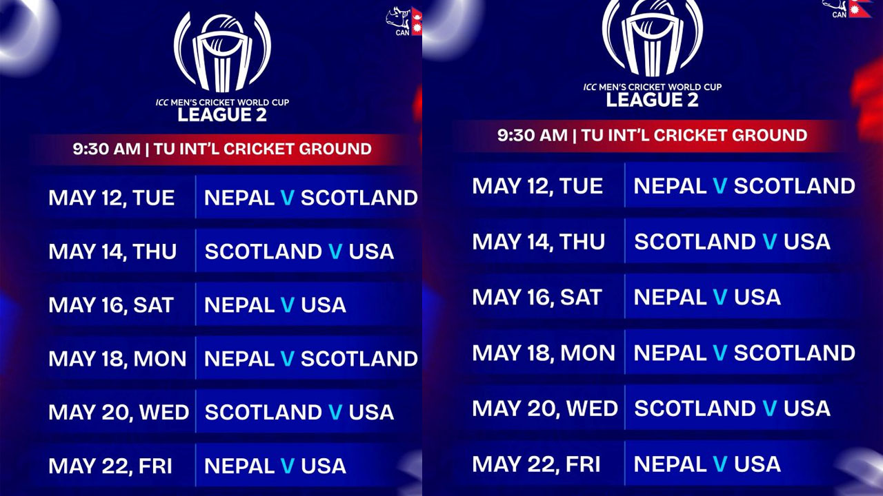 साथै, अर्को चरणका खेलहरू वैशाख २९ गतेदेखि जेठ ८ गतेसम्म आयोजना गरिने तय भएको नेपाल क्रिकेट संघ क्यानले जनाएको छ ।