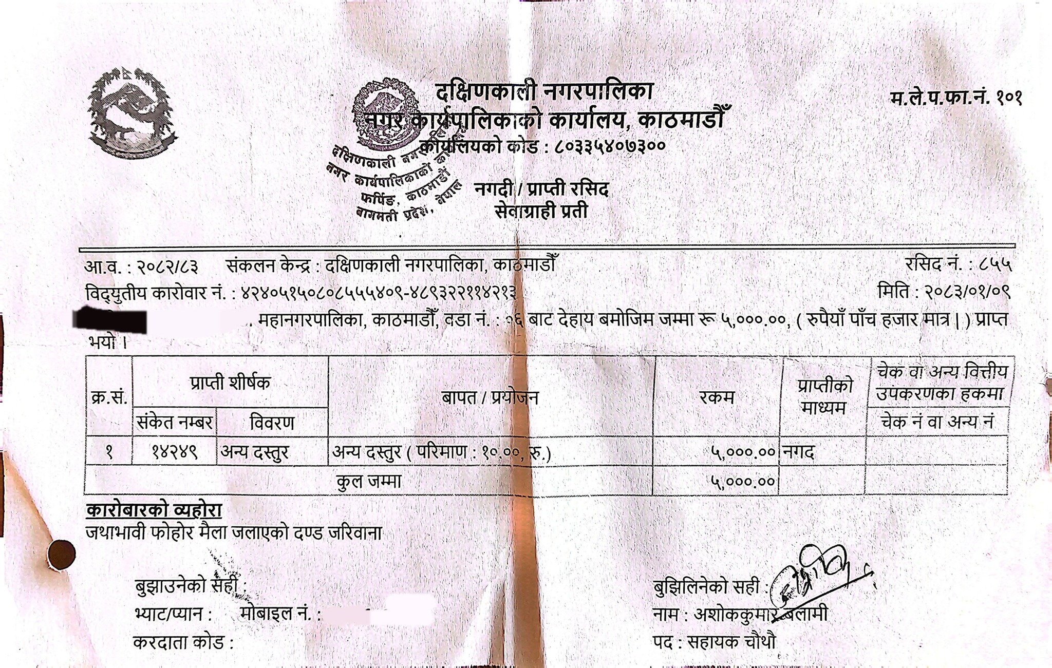 दक्षिणकाली नगर प्रहरी बलका अनुसार दक्षिणकाली मन्दिर जाने सडक नजिकै ध्वजा र फोहोर बालिरहेको अवस्थामा सो सँग सम्बन्धित व्यक्तिहरूलाई पहिलोपटकका लागि पाँच हजार रूपैयाँ जरिवाना तिराइएको हो ।